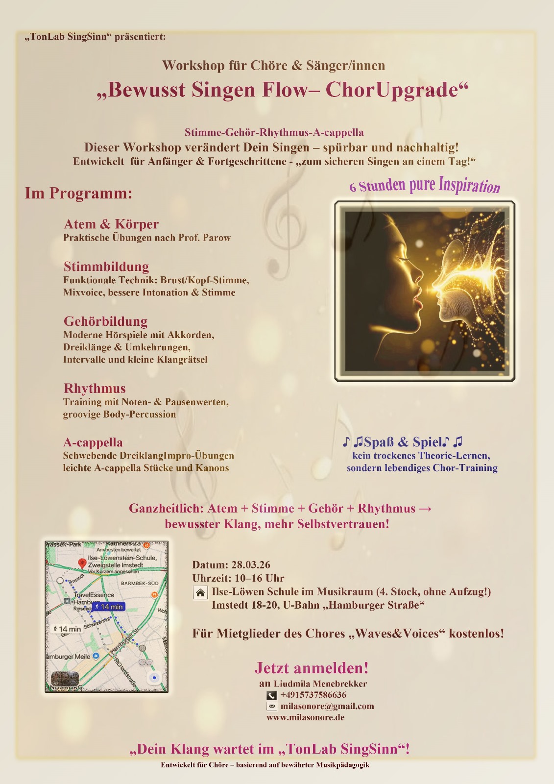 Waves & Voices Pop Chor: 30 €/Monat – Wellenreiter des Pop, harmonisch und frisch.